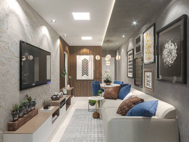 Imóvel de 70m², com 2 Dormitórios, 1 Suíte, Sala 2 Ambientes, Varanda Gourmet, Cozinha Americana, Área de Serviço, Quintal, 1 Banheiro, Churrasqueira e 1 Vaga na Garagem.